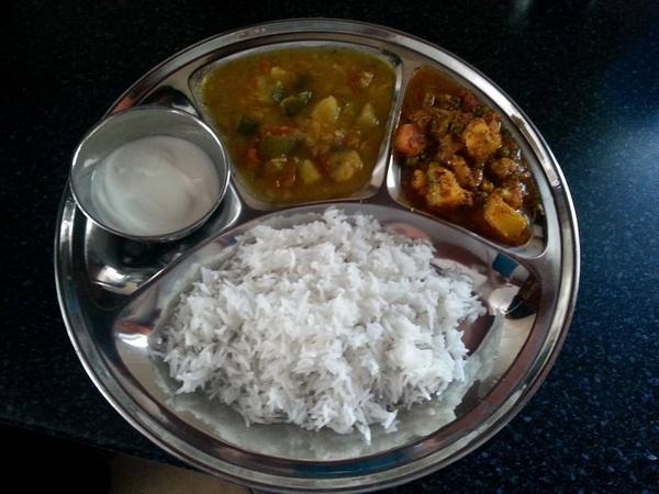 Včera pečené kuřecí stehno s cibulí a chorizo klobásou se zeleninovým kuskusem, dnes vepř.kýta pečená na přírodno s dijon.hořčičí a šťouchané brambory s pažitkou 🙂