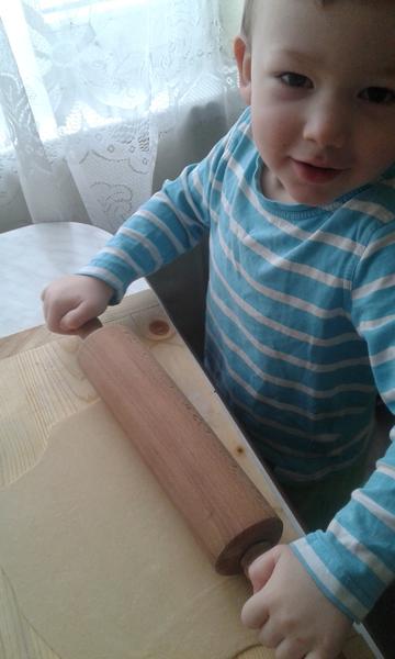 Včera koláče s tvarohem a švestkama-malý pomáhal tak, si hrál se žmolenkou-pojali jsme to jako vnitřní pískoviště.👶