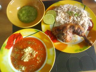 Jinka dneska pečené kuřecí stehýnka indiánská rýže a okurkový salátek a tomatová polévka 😉
