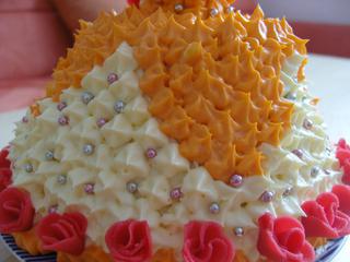 @givana já jsem ten postup dělala jinak, nedělala jsem z bábovky, ale jen prostě jsem v hrncích upekla piškot , naskládala na sebe, nahoru trochu menší průměr a dle potřeby jsem to ještě seřízla. Pak poslepovala krémem. Nahoru jsem dala Baribinu bez noh. Ozdobila krémem.