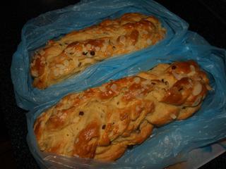 do hotového těsta ještě zapracovat hrozinky a mandle a nechat vykynout.