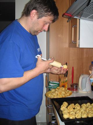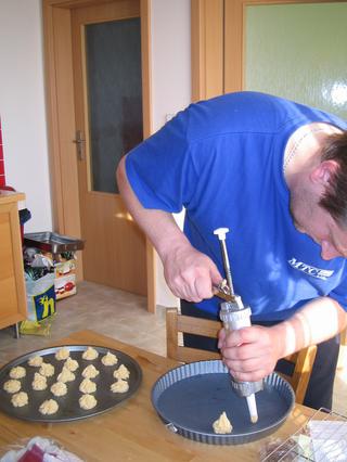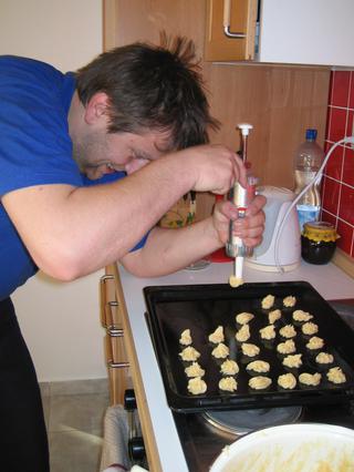 Tady fotky z předminulého pečení - Aleš na ně měl chuť, tak jsem radila a on dělal sám.