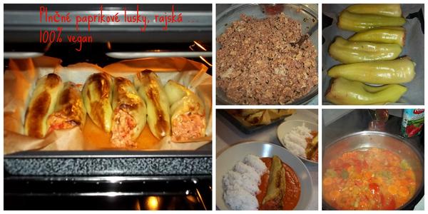 RECEPT: rajska = na oleji velkou cibuli na kostky,1mrkev na kolecka,6 rajcat , 1 kvalitni protlak , zel.bujon,bobk.list, sul, varit 30 minut potom vyndat list bobk. Pridat list bazalk. A rozmixovat .... Na zaver muzete dat lzici veg.smetany ! Plnka do paprik = sojove kostky uvarit do mekka v zel.vyvaru, s cer.paprikou a houbovym korenim, dobre osolit , potom slit vodu a promixovat s 1 soj.parkem,uz.tofu,lzici protlaku a cesnekem ! Naplnit papriky a pect 20 min na oleji v troubĚ