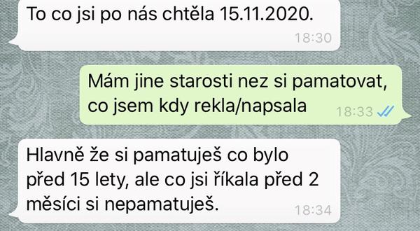 Našla jsem ve screenshotech ještě chaty s tátou. Jsou z ledna. Absolutně jsem to nepobrala už tenkrát :( Bohužel mám taky pocit, že tohle je na odbornou pomoc.