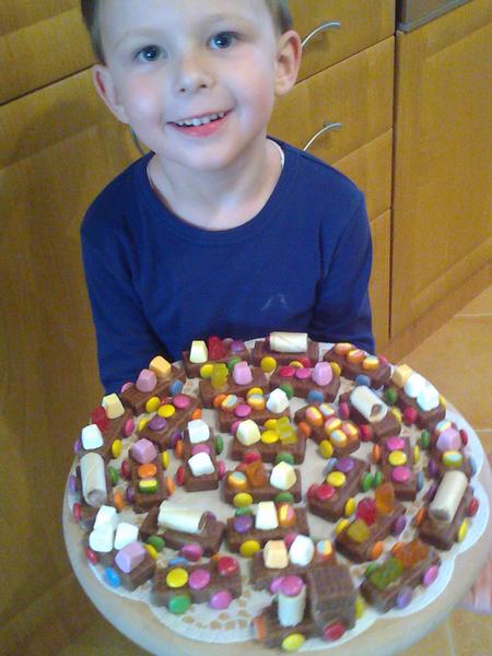 U nás většina dětí donese dort od maminky, 2 děti jsem viděla, jak měly dort kupovaný, a asi jen jeden chlapeček měl "jen" bonbóny. Já jsem dělala dort (a to jsem absolutní laik a výsledek není nijak závratný), ale Anetka si moc užila, že mi mohla pomáhat a pak se s dortem ve školce všude chlubilaa 🙂 Foto tady: