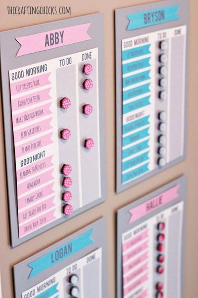 Možná by holky namotivoval nebo jim situaci co se povinností týká zpřehlednil nějaký domací organizační pomocník. Často na pinterestu potkávám různé tabulky, kde děti vidí, co mají za den (ráno, odpoledne, večer) zvládnout. Když je aktivita hotová, přesouvá se do sekce hotovo. Z domu zatím takovou zkušenost nemám, ale s dětmi jsem pracovala a různé obdoby jsme používali, protože obecně zvládání povinností je problém. Podobná udělátka samozřejmě děti nedonutí, ale udělají v situaci jasno, nastaví pravidla, fungují i jako připomenutí povinností a na někoho i motivačně. Osvědčovala se i určitá míra svobody v tom, kdy jakou povinnost budou dělat.