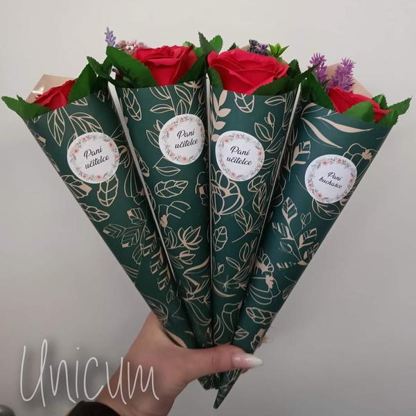 My učitelkám a asistentkám pořídili mýdlové růže a pivoňky. Živých květin budou mít víc než dost. Tak jsme to vyřešili takto. Voní krásně parfémově. Zas to nechci přehánět, drobnost postačí