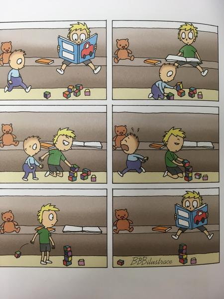 Asi to není nic obvyklého, přikládám můj oblíbený obrázek z komiksu Barbory Brůnové o rodičovství: