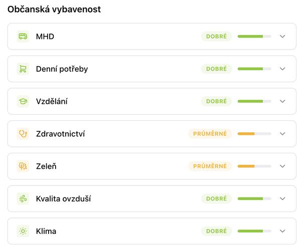 K inzerátům doplňujeme věci, které v běžných nabídkách chybí - dojezdové časy (auto, MHD i pěšky), hluk, zeleň, vybavenost… a hlídáme změny v nabídce. 😎