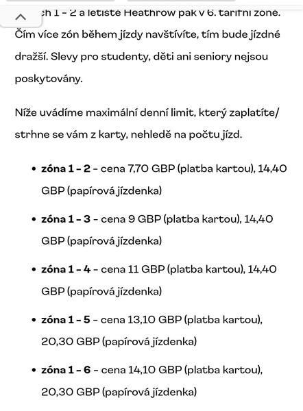 @fifinka2020 píšu, že loni jsme za každou jízdu platili jinak. Oba dny jsme měli jen tu jednu jízdu. Taky mě to překvapilo. Uvidíte, no. Pokud máte při nějakém přeletu na Londýn jen pár hodin, tak bych to asi neřešila a jela bych Elisabeth line, je to úspora možná třetiny? času, méně zastávek, lepší/úplně nové vagony a tolik to nehází 😃