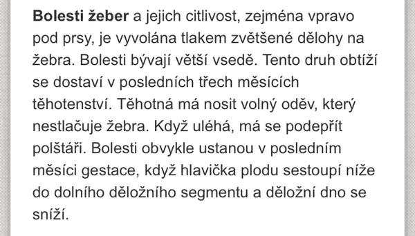 Holky mate nektera taky problem s timhle? Zaclo mi to asi pred tydnem. A hrozna bolest. Jen na prave strane pod prsem. Jak kdyz se vam mala vytlacuje tam pres zebro. Vzdy sileny tlak a bolest a pak to ustane. Kolikrat kvuli tomu nemuzu ani spat. Dneska jsem si to nasla na netu tak se mi trosku ulevilo ze to neni treba nejakej zanet v prsu, jelikoz me z toho kolikrat boli. Snad to brzy ustane. Ma to nektera? Nejake rady co treba ulevi od te bolesti?🙂
