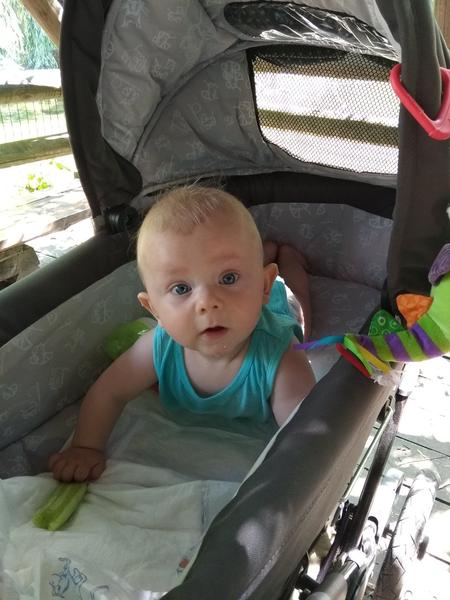 Je to je taky kocour, a jaký má krásný očička, ty kluci je mají tak krásný. Já ji takhle dát nemůžu, mám jakousi kolíbkovou korbu a převažuje se mě to, už jsem to tak koupila a prý to je od výrobce bo co. Takže musím jí mít naopak, ale i tak jí to stačilo, počkám až mi bude sedět a hned vytáhnu sportovní korbu, už je v té hluboké naknop, ale ještě se do ní vejde.