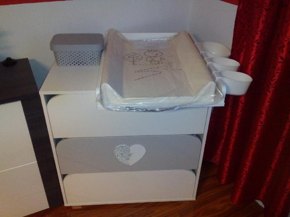 @veselaopicka jinak my máme koupenou takovou komodu spolu k ní i postýlku. Komodu mám danou v rohu v jídelně, jelikož tam máme krbová kamna, tak je tam krásně teplo a postýlku mám danou hned vedle v obyváku a druhou postýlku, pak nahoře v ložnici. Tahle komoda je pěkně prostorná a hlavně má pěkně hluboké šuplíky, ale využila jsem tedy i na nějaké věci komodu, kterou mám normálně v jídelně hned vedle přebalováku