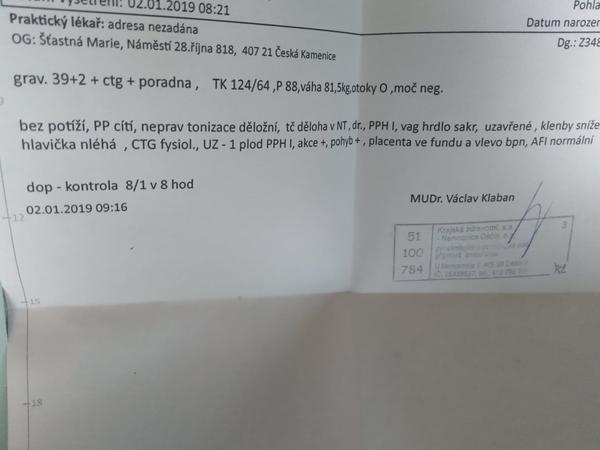 Teda holky já zase dneska měla den... Měla jsem kontrolu v porodnici, 37+5. V úterý ze mě vytekl tak panák vody, no lekla jsem se, že rodim, ale od tý doby nic. Tak jsem to dneska říkala doktorce a radši mě poslala na ultrazvuk, jestli mi neutíká plodovka. Ta to tedy naštěstí není, ale prý to můžou být kvasinky, tak mi udělala stěry a výsledky budou v pondělí :-/ Každopádně to bylo asi to nejmenší "zlo", co jsem si dneska zažila. Byla jsem na ozvách, minule si doktorka pochvalovala, že je mám jak z učebnice (byla jsem tam 20 minut). Dneska malý pořád spal, takže ozvy 50 minut, no přítel v čekárně skoro usnul 🙂 Každopádně doktorce se výsledky vůbec nelíbily, i v době kdy nespal prý nebyly nejlepší. Tak mě poslala na další ozvy se slovy, že pokud by byl záznam stejný, jdu rovnou nahoru na sál 😲 No vyděsilo mě to jako blázen, při dalších ozvách malý zase nespolupracoval, tak jsem polohovala, sestřička ho šťouchala a přítel mi zašel pro čokoládu, aby jsme ho nějak probudili. Takže na dalších ozvách jsme opět vytrvrdli 40 minut. Sestřička byla moc hodná a přizvala přítele dovnitř, tak alespoň nemusel čekat na chodbě. Výsledky byly tedy už lepší, ale doktorce se stejně moc nelíbily, takže s tím utíkala ještě za dalšími doktory.... Vrátila se s verdiktem, že další 3 doktoři říkali, že by neplašili, že výsledky jsou celkem v normě a opravdu to může být tím, že malý dneska prostě nechtěl spolupracovat. Tak mi řekla, že možná trochu hysterčí, ale že pro klid svý duše mě poprosí abych na kontrolní ozvy přišla už v pondělí. Upřímně mi to vůbec nevadí, jsem docela ráda, že jsem kápla zrovna na takovouhle doktorku, ptž radši to pořádně pohlídat, než pak řešit průsery a tahle je opravdu svědomitá 😉 Jo a jinak ve zprávě už mám napsáno že čípek zkrácen, hrdlo pro prst v celém rozsahu a hlavička plodu nad vchodem. A malej už má 3200g 🙂 Jak dlouho před porodem jste se začaly otevírat??? Jak čekám první tak vůbec netuším, jak dlouho to teď může trvat, jestli mám ještě čas nebo to může být každým dnem? Asi bych si konečně měla dobalit tu tašku... :D