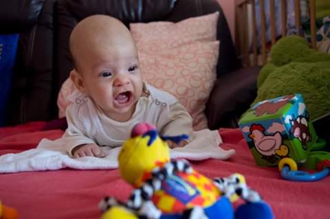 @halasovci007 : já myslím že ty děti moc ještě pozornost neumí udržet - Klárka u toho mazlení se směje ale jinak je to takové že se tváří neurčitě občas se usměje