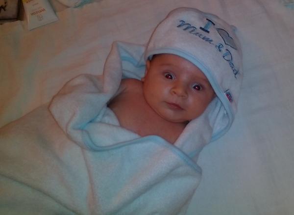Holky po nějaké době Vás zase zdravím. Nemám vůbec čas se sem za váma dostat malý zase jede. Buď spí až moc že spí třeba 2hod. v kuse vzbudí se na kojení a zase spí, až se bojím jestli je vše ok, když spí tak moc, ale většinou přes den skoro nespí usne na půl hodky a je hore furt se mu musím věnovat, jak dodje manžel z práce doháním co je potřeba doma a do toho nás hodně začalo zlobit bříško a noční spaní to je taky boj. Kolikrát se budí co 2 hod. a než ho uspím, tak to i 2 hod. trvá a do toho ještě řve :-/ jsem z tohoto týdne zase úplně vyřízená už odpočítávám kdy kdy bude víkend a vstávat k malému manžel to já jen kojím a spím. Jinak malý si taky začal rvat pěsti do pusy kolikrát hodně vztekle a už ji tam rve i při kojení k prsu a když mu začnu nadávat směje se tomu. Jinak máme 2,5měs. a 6300g takže už se pěkně pronese. Posílám aktuální foto, jak rosteme.
