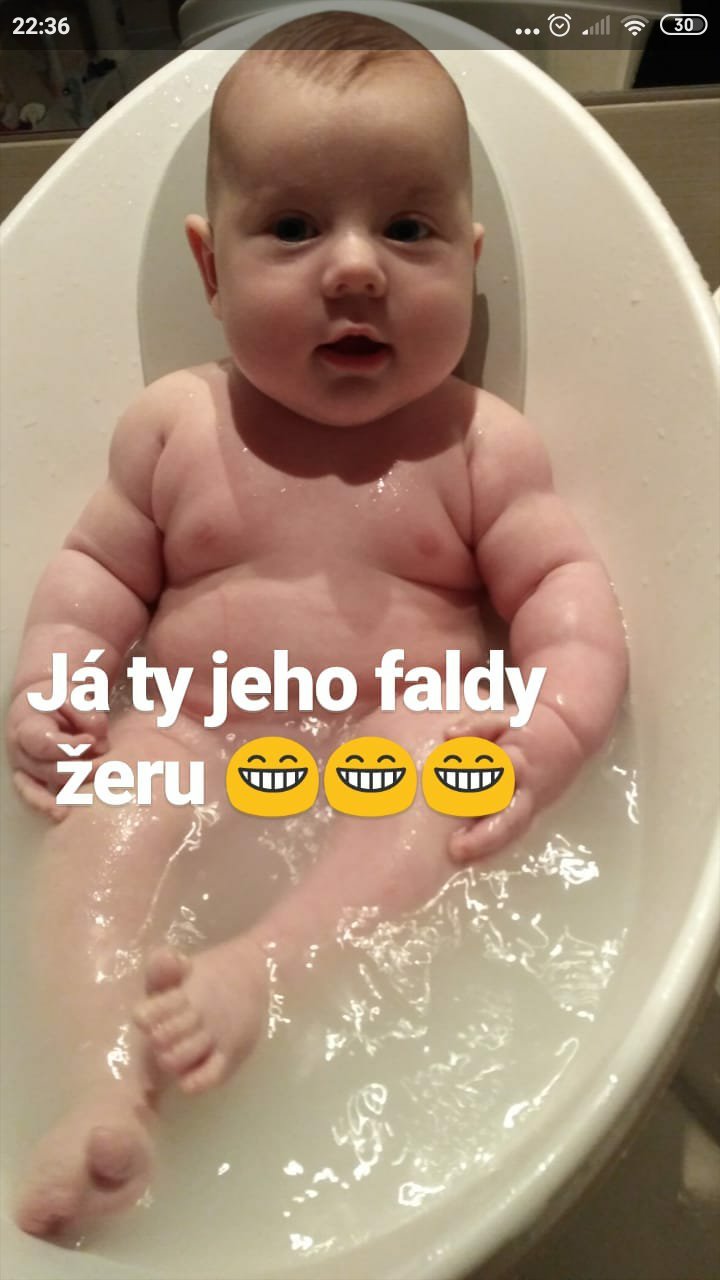 Taky už je přes celou vaničku a to jsem si myslela, že mám velkou. A ona tak rada plave, kope nožkama jak žabička 🙂.