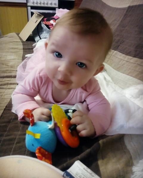 Dneska malá celej den když je možnost na břiše a za vydatného řevu "mě to nejdééééé" se snaží soukat nohy pod sebe a odšprtávat se... zatím to nejde no 😀