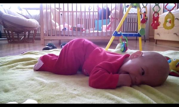 @malecek to dělávala taky. Ale nejdřív jsem jí pomáhala, pak už jsem ji vždycky jen zatížila ten zadek jak už jsem psala a tak za týden už to uměla sama. Tohle je screenshot z videa už večer, takže už jakože odpočívá ale přitom se furt snaží 😀 a ty zuby, ty jsou potvory... Co vylezly tak slinta jak dva buldoci a ne jeden. Dneska se v těch slintech malém utopila ....