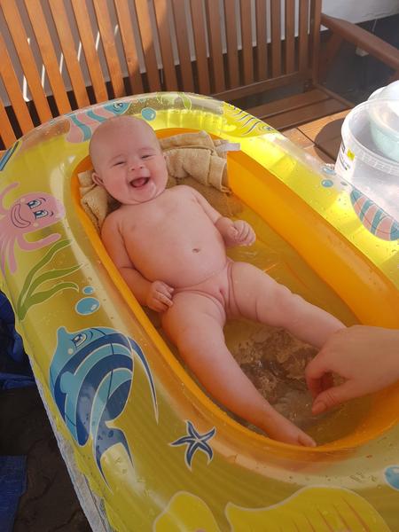 My jsme furt na zahradě úplně nahaty. Teda jako myslím malou samozřejmě 😅 i bez plenky a je jí fajn. Mám ji na podložce pod slunečníkem, látková pod ní když se pocura vyměním a jelikož nekaka často mám vyhodu.. A osvetuji namocenou plenku pořád se bojím dát do bazénku ptz ji teď dávám na koupání chladnější vodu večer svá dny a vždycky brečela tak se jí to asi nelíbí.