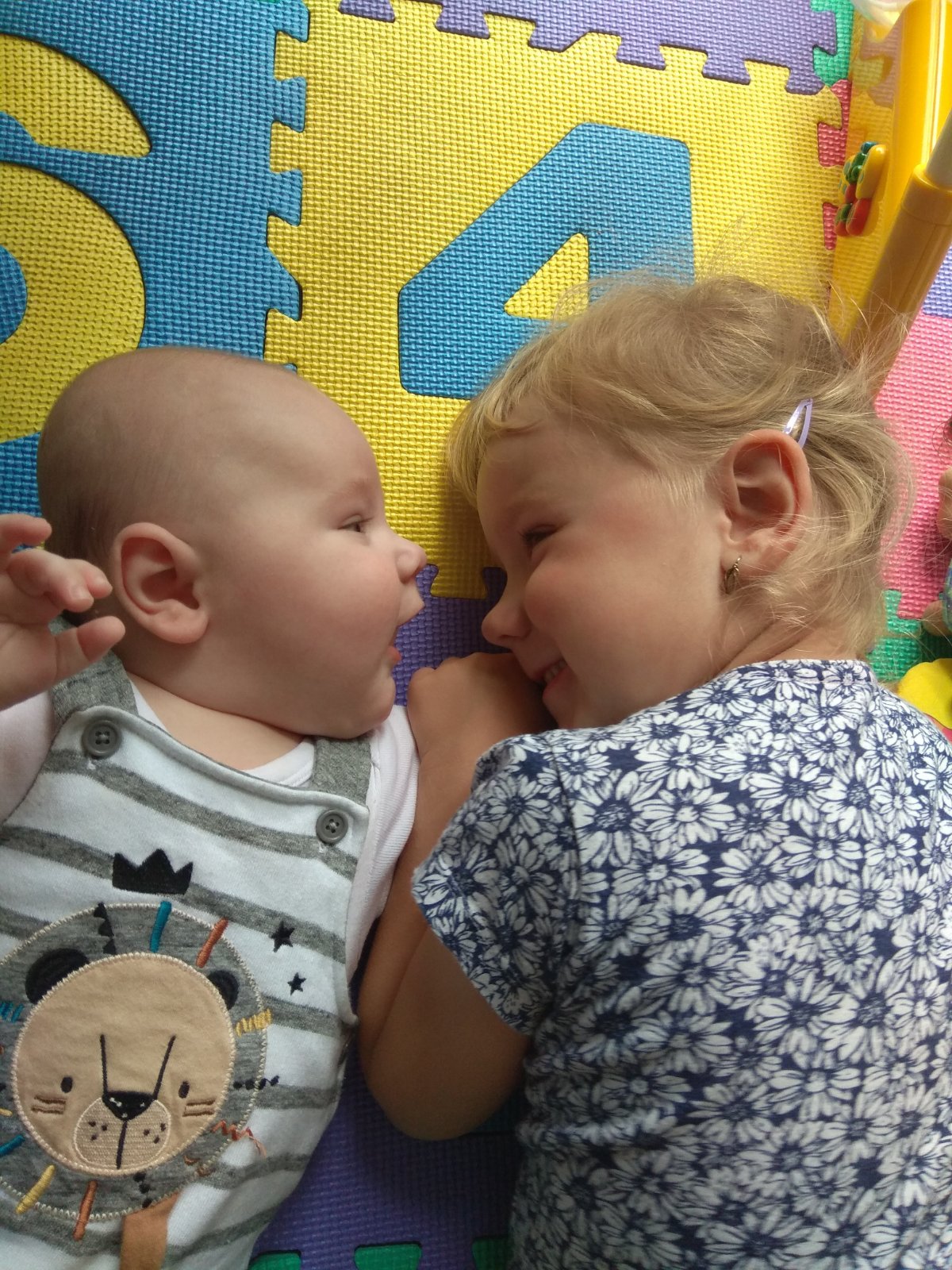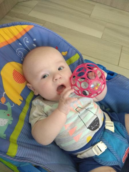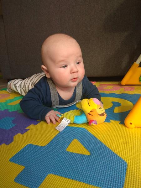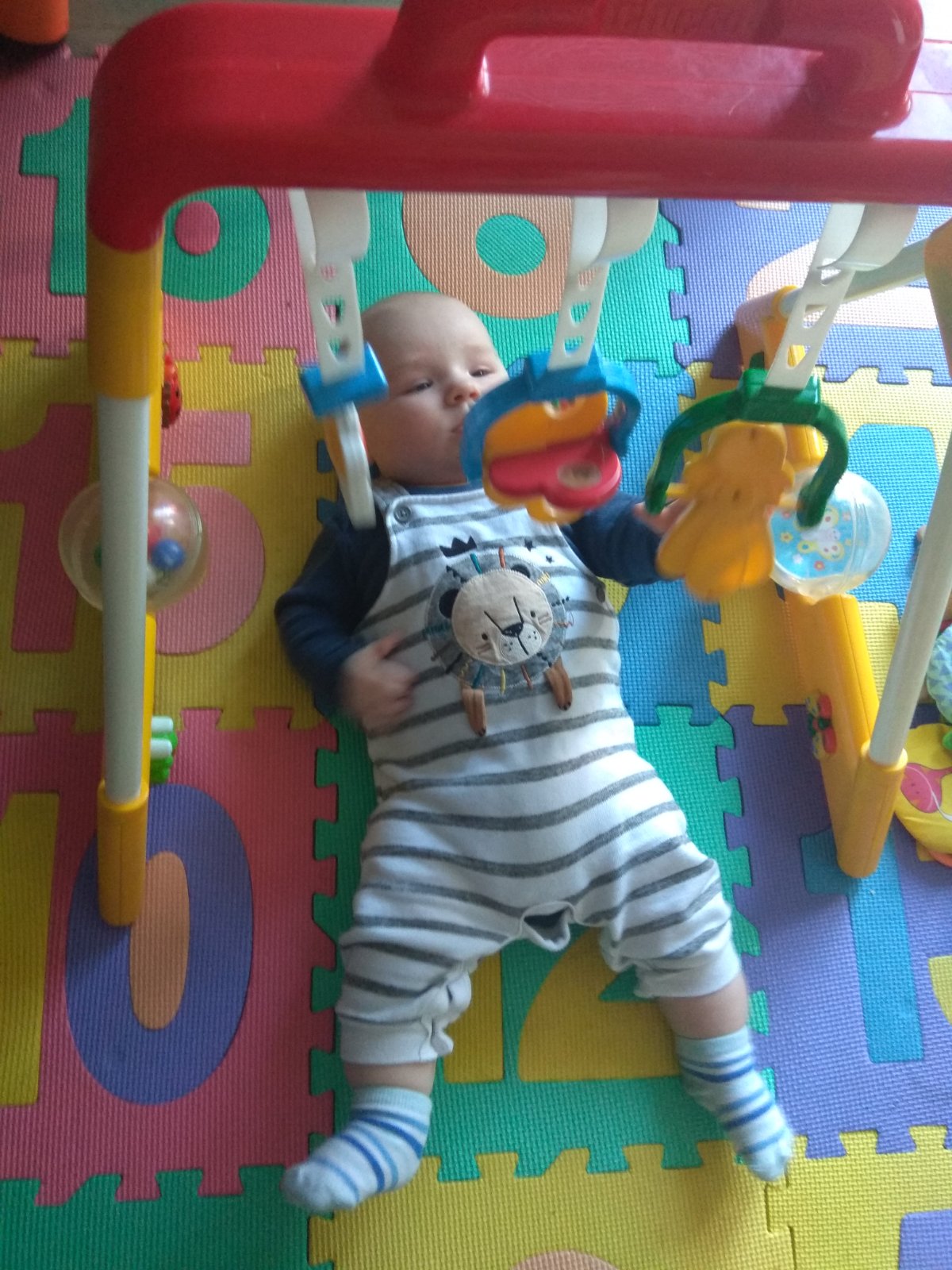 @krisatko on si taky kolem sebe podá úplně všechno na co dosáhne, když je sám na zemi 😁 ale když mu dáváme hračku nad pupek, tak neví kterou rukou to vzít.. A jinak taky kouká dost daleko, vždy se na nás chechtá, záleží kdo na něj mluví a sleduje kam jdeme i odkud přicházíme 🙂