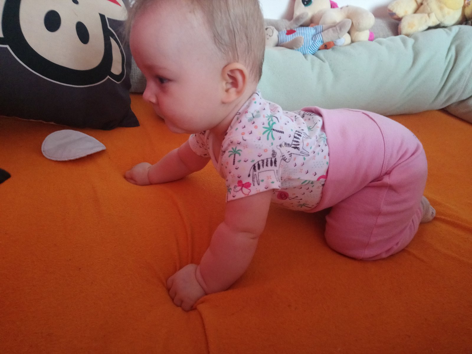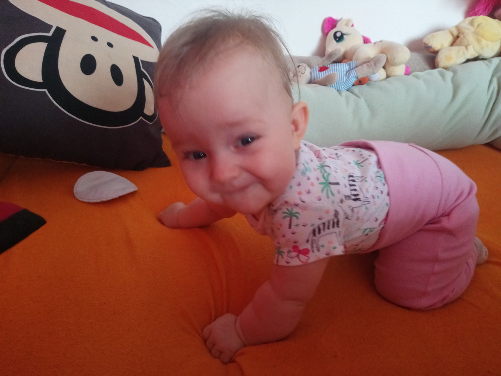 Jinak jsem zvedava, kdy to nase skrvrne zacne se plazit, jestli to nahodou nepreskoci... nonstop ted je na kolinkach a peruje dopredu a dozadu