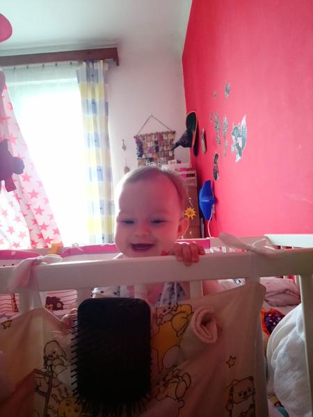 @zetta01 Ohrádku mám už od 3 měsíců. Měla tam kolotoč a spoustu plyšáků okolo zvykala jsem ji že tam je a já chodím okolo (úklid, žehlení, atd.) a fakt tam už od těch 3 měsíců postupně vydržela od 10 minut až třeba do půl hodiny. Dokud nelezla a nesedala si tak tam vydržela pod kolotočem a s pár hračkama okolo sebe i hodinku.. Ale teď už je teda fakt sígr. Během dvou nebo tří dnů lozí uplně s přehledem kam potřebuje si "dojde", sedí už jak ze šikma, tak i si hodí nohy obě dopředu a mezi nima se opře o ruky, nebo se opře jen o jednu a druhou šahá po hračce.... no... začínám uvažovat nad výrobou ohrádky i na dvůr, protože to už ani pro vajíčka nedojdu... :D