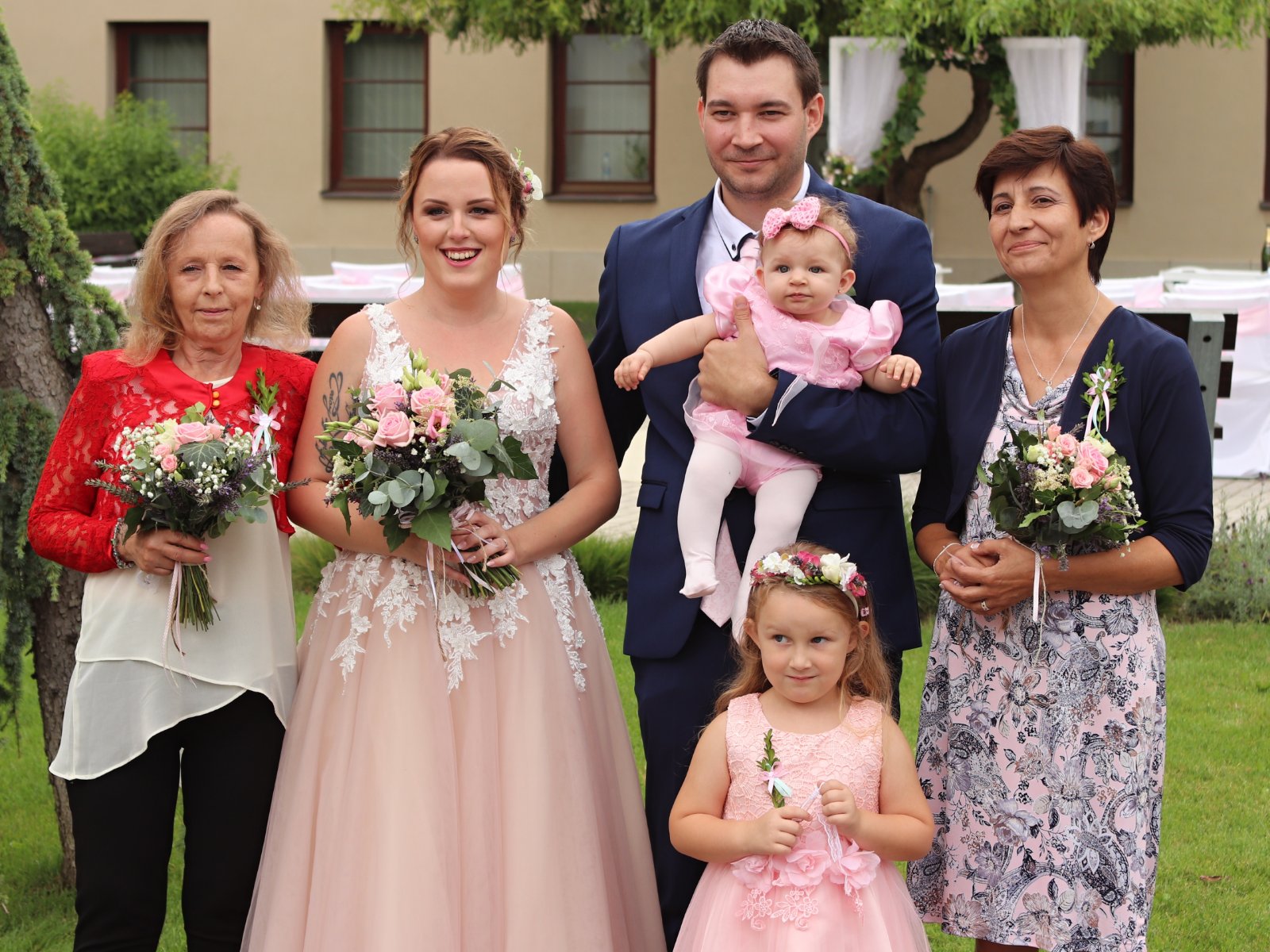 @semmi Já na svatbu vzpomínám hezky docela, celý den proběhl jak jsme si naplánovali. Brali jsme se 10.6.2011 Taková krpa hned na začátku - zapomněla jsem doma občanky :D Tak pro ně tchán musel zajet. Po obřadu jsme jeli s policejním doprovodem (manžel dělal na PČR tehdy) do parku kde nás náš známy fotil a pak jsme se přesunuli na chatu k babičce, kde jsme měli už od rána známého co rožnil prase, plus babička ještě nachystala polívku a guláš, prej kdyby měl někdo hlad dřív než to prase bude :D Taťka (nevlastní) nachystal obložené mísy a mamka zajistila cukroví... V podstatě nás ta svatba vyšla na úplný prd, řekla bych tak do 25tisíc i s šatama (e-bay za 3500 i se spodničkou). Jediné co mi tak jako utkvělo, že jsem koupila dva lampiony štěstí abychom já i manžel něco napsali a pak je solečně každý svůj večer na chatě vypustili. A ten "můj" si zapálil a vypustil švagr... no... tak to mě docela jako nasejřilo no...