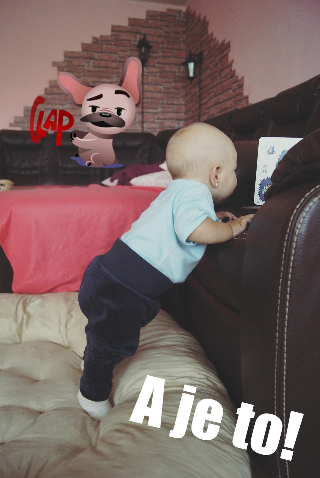 @krisatko to je cvrček 😍 ten náš se "jen" zvedá o sedačku do vzpřímeného kleku.. Taky sranda v asi 60cm výšky.. Mě berou mrakoty, a on se děsně chechta, že se mu to povedlo 😂