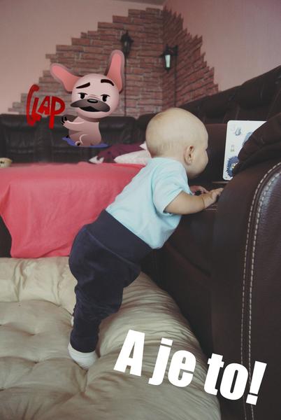 @krisatko no ten náš ještě neleze, peruje o sto šest, ale vzpřímený klek o cokoliv je teď nejoblíbenější 😂 jde to dost rychle.. Jsem zvědavá jestli příští týden na 9m bude už lézt.. Jinak ho čeká v úterý kontrola, tak uvidíme, jestli dostane cvičení nebo ne.. 🙂