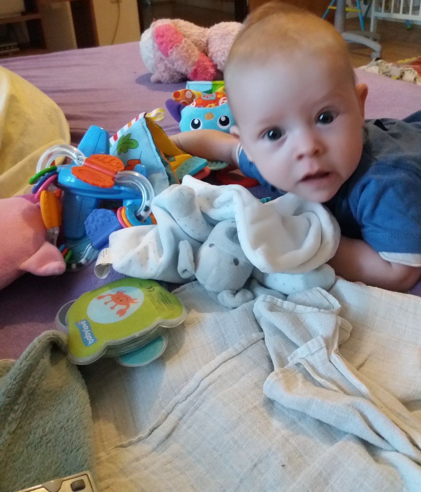 My chodime ven zatim v hluboké korbě a ma na sobe body, teplacky a mikinu a jarni fusak. U nas hodne fouka tak obcas mi dam jeste vestu. Potřebovala bych poradit kdy davat malymu kasi. Zatim ma jen UM a zeleninový prikrm. Ji rano kdyz se poprve vzbudi okolo 4 hodiny, pak v 8, v 11 ma prikrm, ve 14,17 a pak po 20 po koupani pred spanim. Po koupani už mu kasi nedam protože uz je vetsinou unavený a protivny. Tak kdy je podle vas vhodny cas.