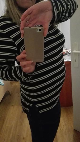 Já už jsem si dneska koupila ty těhotenský kalhoty, protože mě pupík tlačí od knoflíku, takže proč se mačkat, teda je to s tou gumou nezvyk to musím říct, až pomalu pod prsa 😀 Ale zvyknu si, bříška máte krásná, později taky hodím fotku. Ale já jsem ještě takový napůl vyžraná 😀 mi přijde, ale už se taky rýsuju..