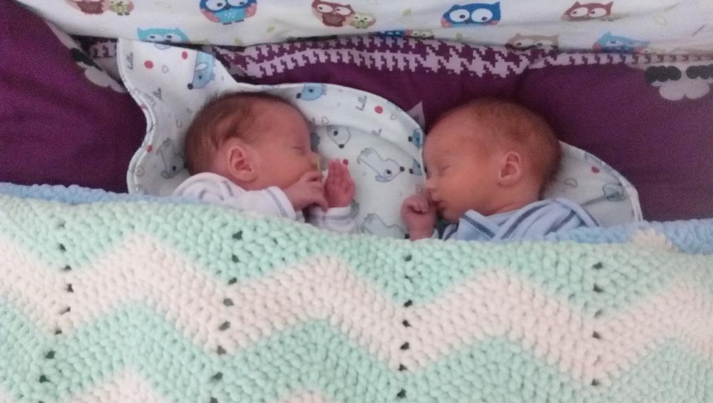 Když mě pak po porodu pustili tak jsem měla den a půl na zařízení, kluci byli v nemocnici, já doma, takže jsem 3 - tí den po císaři, běhala, prala, žehlila, oblíkala postýlky, ještě jsem jela ke kamarádce, kde jsem měla domluvené autosedačky a pak jsem do každé té autosedačky dala věci co mi měl dovést, aby jsme kluky odvezli, no ve výsledku by se do jedné kombinézy vlezli oba 😀