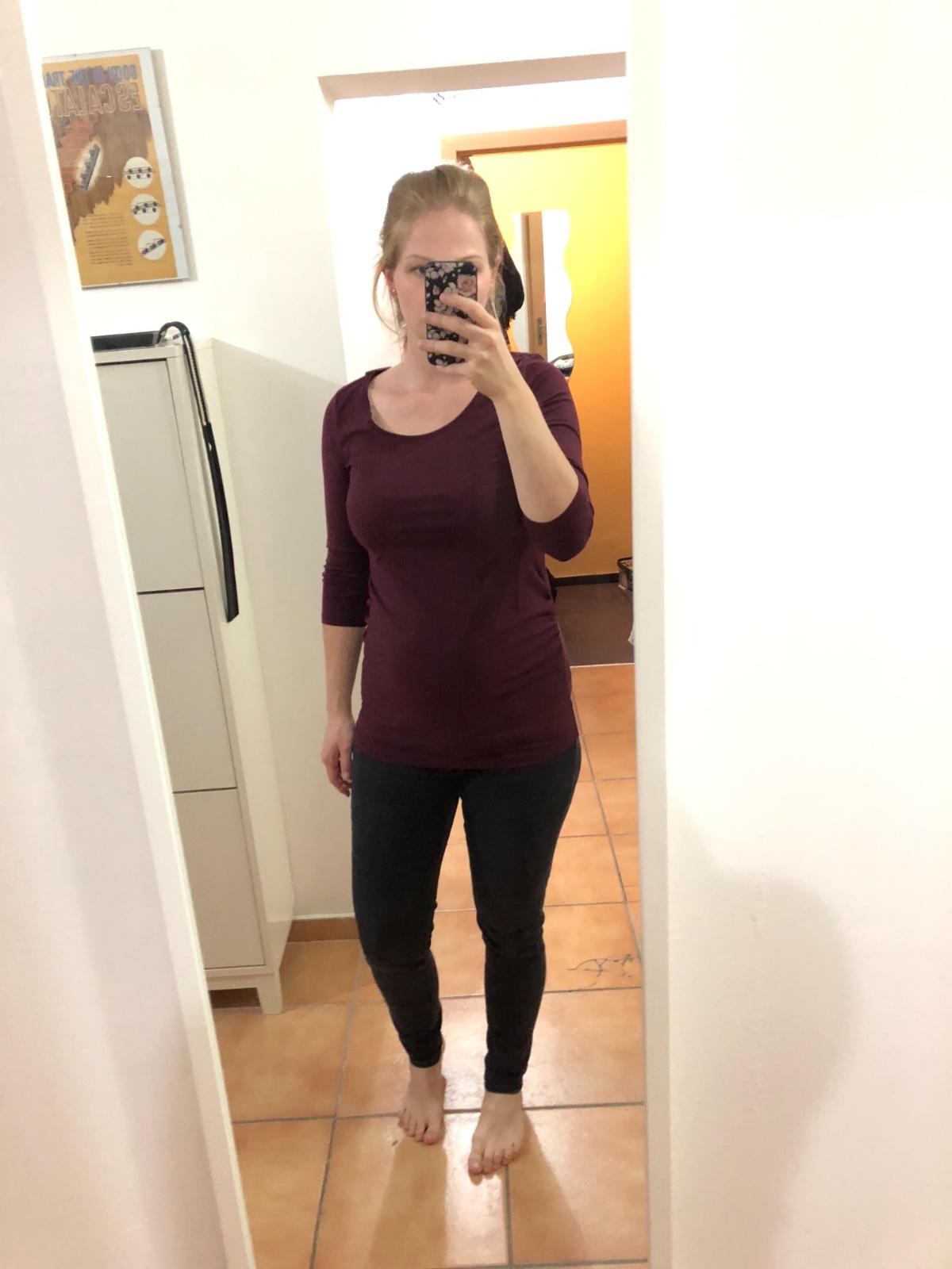 Tak jsem doma z kontroly. Všechno vypadá dobře. Děti mají cca 270 a 290 gramů, pravděpodobně je to páreček (ten jsem si přála nejvic). Ale teď potřebuju poradit. Odpoledne jsem pozvaná na kamarádky rozlučku se svobodou - dáme pozdní oběd, pak bar a pak prej pánský stryptýz, to já už půjdu asi domu. Ale já nevim, co si mám oblíknout. Ve vše si připadám hrozně velká a ošklivá. Dám sem nějaký varianty, tak mi prosím napište váš názor. Ke všemu bych si vzala jeansku, ale ta se zrovna pere, takže si jí jen představte 😂
