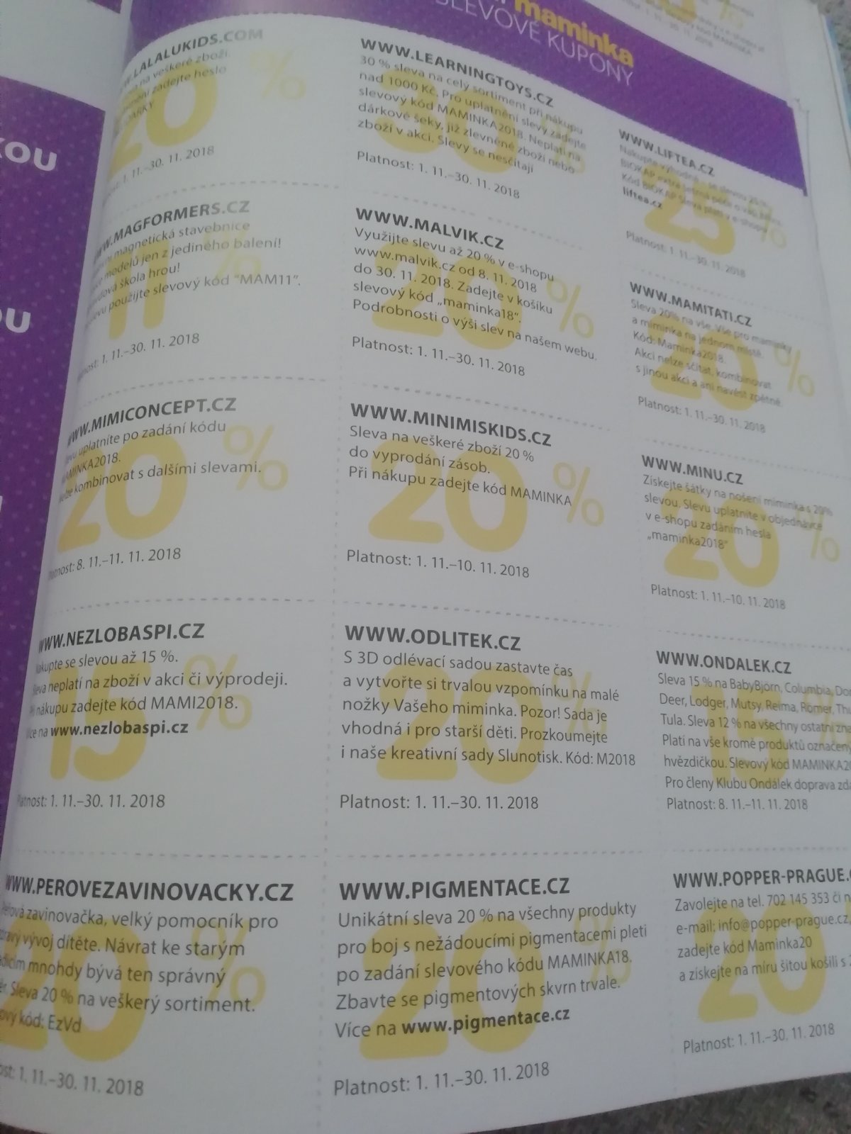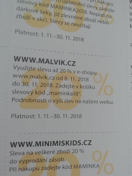 @seveneye Prosim te, takze v ty Mamince kody nejsou? Ja bych jeste taky 20% do Malvika vyuzila 🙂 diky