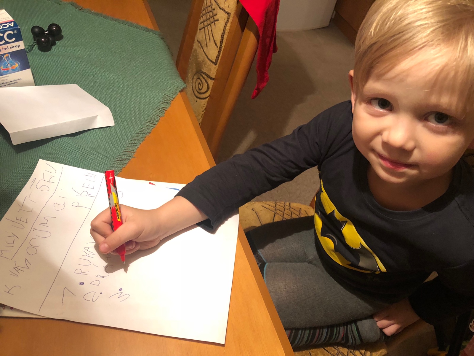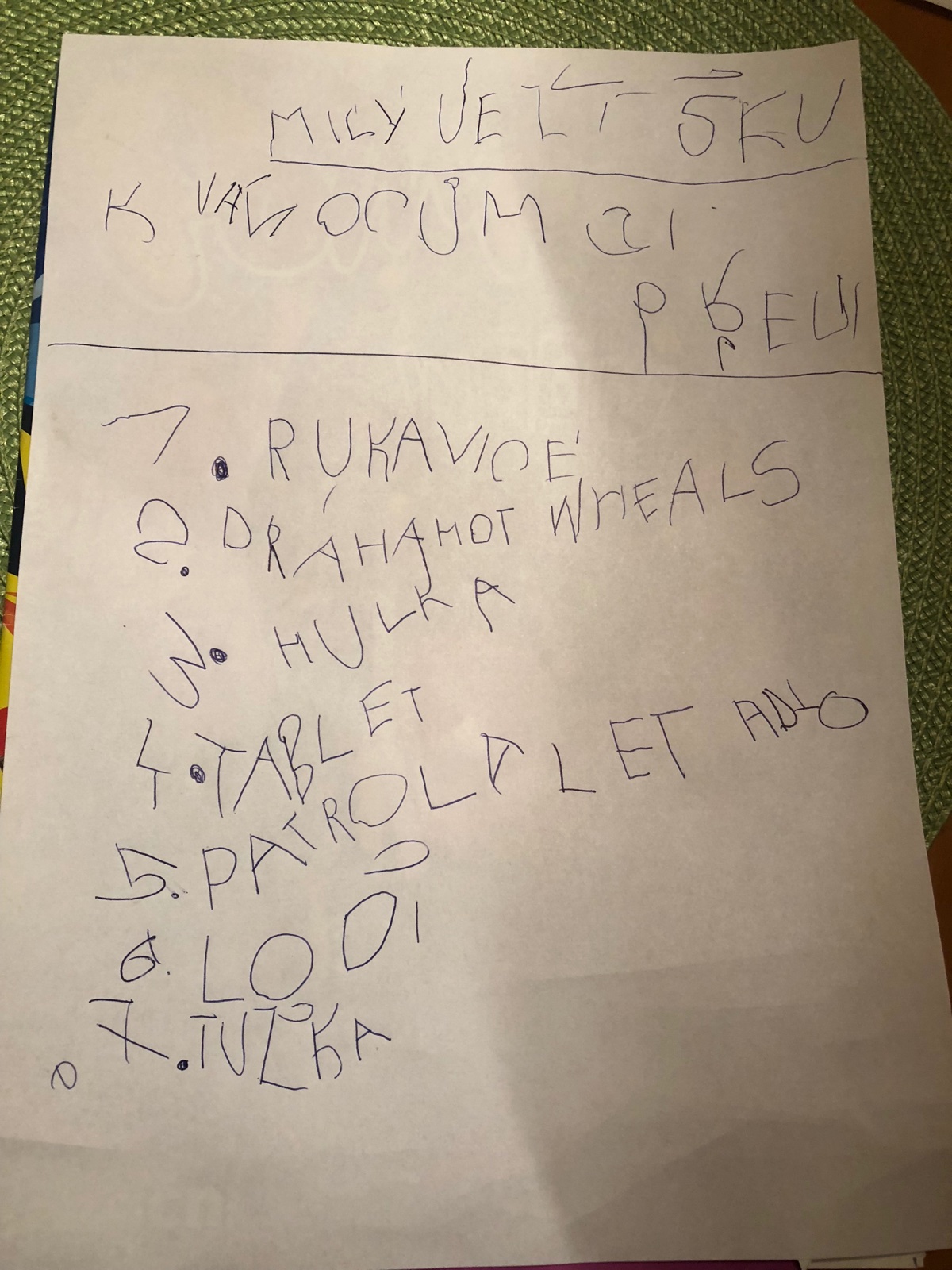 Jinak holky. :D Cca po hodine syn dopsal Sám dopis jeziskovi. Ja psala vedle na papir písmenka jak maji vypadat. Bylo to o nervy ale zvladl to. A Diky tomu ze to psal sam je ten seznam vazne kratky :D :D Protoze ho to nebavilo :D