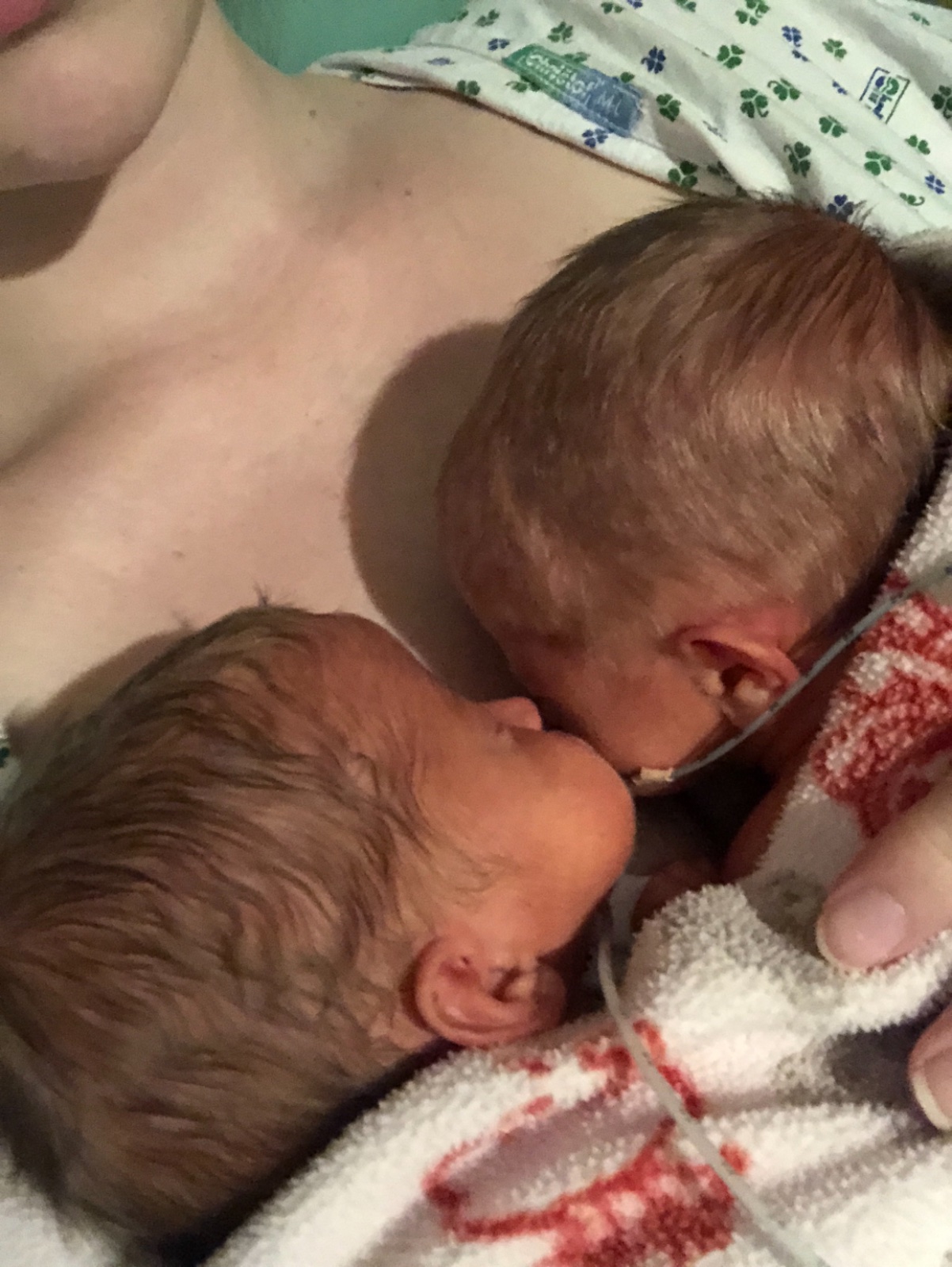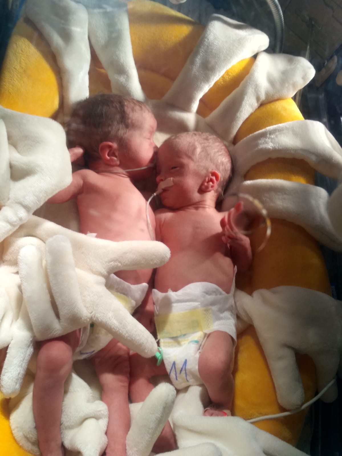 Sestřičky na JIPu řikaj, že je tam maji na mazlení a celej personál neonatologie se na ně chodí koukat. Prý neni úplně standardní, aby byli oba natolik v pohodě, aby mohli být spolu v inkubátoru, takže z toho mají všichni radost.