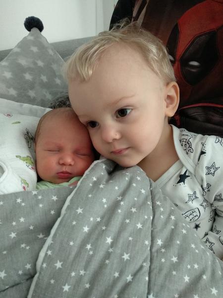 Gratulujeme nové narozeným miminkům, my už od pondělí doma ❤️ užíváme si jeden druhého 💚 až budu na notebooku taky vám písnu náš rychloporod 😁taky jsem s braskou Eliáškem (2r) 😍