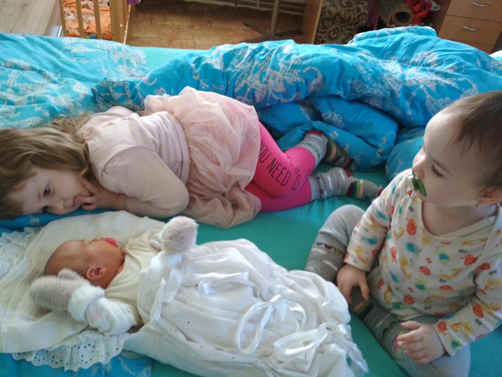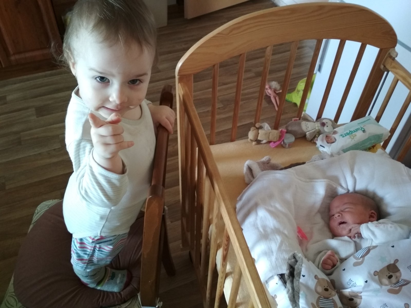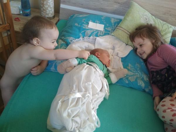 Ahojky holky 🙂 Tak nám byl dneska týden 😍 Jindřiška je šikulka, v neděli nás pustili z porodnice, v úterý jsme byly u doktorky a za ty dva dny brouček přibrala 100gramů 🙂 Tak měla obr pochvalu 😊 Včera večer ji upadnul pahýlek 🙂 Jinak je to láska, zatím pláče jen když jí něco trápí (prdík nebo krkanec) 😀 Nejradši chrupe u mě v posteli 😀 Holky ji zbožňují, pořád ji hlídají, hladí a pusinkují 😊😍 Nosí plínky, asistují u přebalování, u kojení 😀 Od včera manžel chodí do práce, tak jsem tu celý den na ty tři draky sama 🙈😀 Ale zatím to zvládáme s prstem v nose, i když je to od rána hoňka 😊 Tak tady nějaký foto od nás 😍