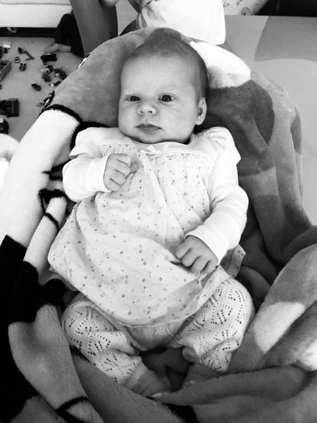 Naše Nicol, včera měla 3 týdny a zatím je to zlatíčko i když momentálně na ATB, ale zvládá to líp než maminka.