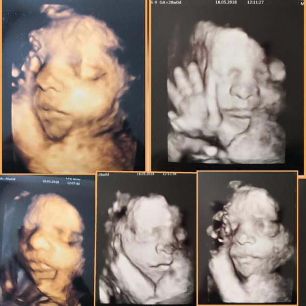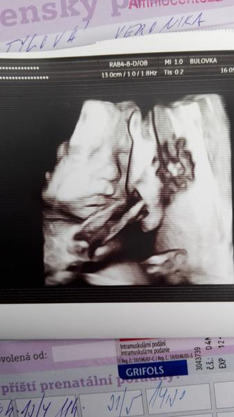 Včera jsem trpěla 3,5h😕Dnes jsme ale byli na růstovém skenu a vše v pořádku.Malý Matyáš má odhad 1072g a nerad se fotí😄