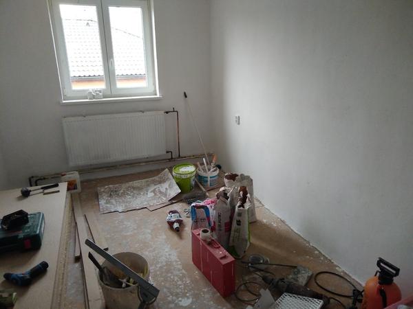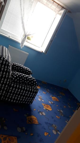 Jinak pokoj bude taky modrý, jedná strana šedá... teď je ještě zelený:D manžel chce začít zítra bily strop.. ještě není doklizeno po malování ostatních místností... a rozese*em další.. to už nikdo neuklidi :D