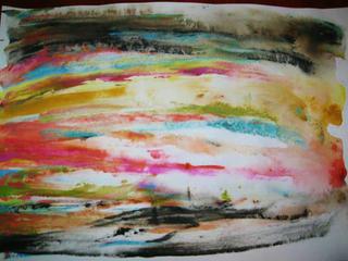 @ivett1 jeste me ted napadlo, ze u nas jeste frci roztirani barev spachtli, da se to pouzit treba jako podklad pod neco dalsiho, ale vypada to moc pekne aj samotny 😵 namocis papir, na kraj udelas pod sebe bobky temperek a pak si dite vezme kousek kartonu a rozetre to dlouhym tahem po papiru, hodim taky jeden obrazek, my jsme tak delali "duhovou branu" 😵
