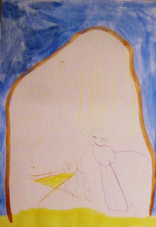 kdo by nepoznal, tak je to Jezisek v jeslickach a Marie ho koliba (proto ta dlooouha ruka 😀 ), proc ji stoji vlasy na hlave netusim 😀 na to, ze jeste nedavno vubec kreslit a malovat nechtel, je to uplny veledilo 😵 😵 😵