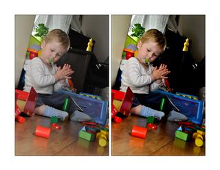 Ahojky holky, tak ja jsem teď zkusila jako sonape porovnání jedné fotečky před a po upravení. Jinak já čas nenastavuji, protože raději sáhnu po tom externím blesku, který mi zaručí, že i když se bude Tomášek mlít jak o závod, tak nejsem nijak omezována. Takže ho vážně moc doporučuji 🙂