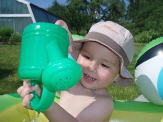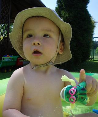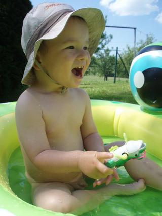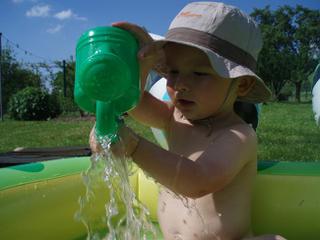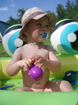 Tady posílám ještě pár foteček našeho Dominička. Vodičku miluje, tak si to dneska patřičně užíval. 🙂