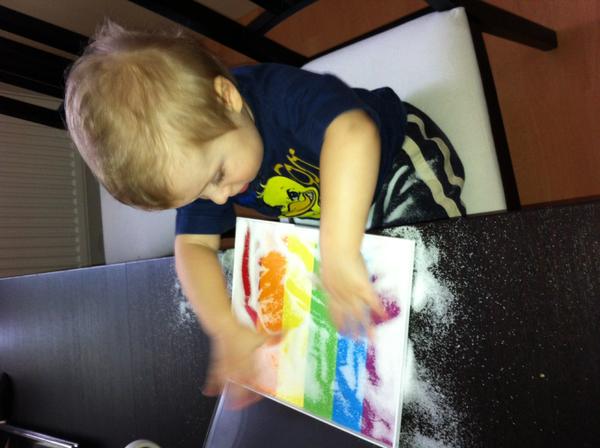 ja kdyz si vzpomenu, jak jsem mu udelala barevne kresleni v soli a prvni co ho napadlo bylo tu sul vysypat ven (a vysypat je slabe slovo :D) 🙂, tri dny mi krupala pod nohama :D