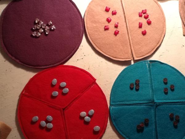 Holky, posílám foto, první jsou nanuky a na ně typy polev, jestli stačí takto? Ještě jsem uvažovala na ty polevy našít nějaké korálky, flitry... Ale zas nevím, jak dalece to bude pro ty prcky bezpečný...pak jsou ty výše lze na zlomky, v každým pytlíku k tomu bude 12 korálků... Je to dvojité, obšité strojem, tak snad to chvíli vydrží😀. No a pak to bingo... Semafory ještě nemám, na ty se chystám vrhnout o víkendu teď..