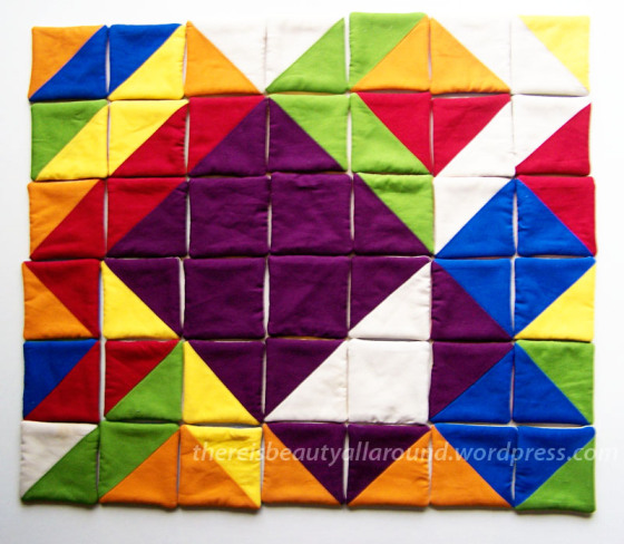 @dagmarkaaa na tohle jsme v patchworku měli zrychlené postupy šití, ale to se pak nemusel každý čtvereček ještě obšívat. Já bych to ušila jednou a dost - 12x to musí být mazec