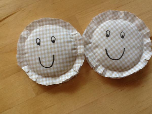 Ahoj holky, přikládám fotku prototypových "sluníček" na hmatovou hru pro kategorii 3-6. Bylo by asi 5-6 dvojic, každá dvojice z jiné látky, vždy v těch dvou stejné předměty na vyhledání po hmatu... Tohle je jednodušší na sešití, než ty stejný rybky, takže v tom množství by mi to vyhovovalo o dost víc🙂. Takže bych ve 4. kole měla pro věk. kategorii 1-3 ty čtyři páry různých rybek, pro 3-6 pak tyhle sluníčka, souhlasíte?